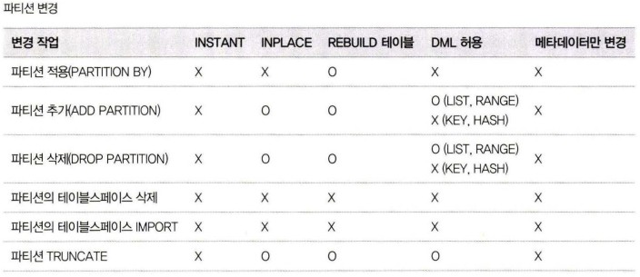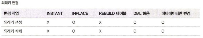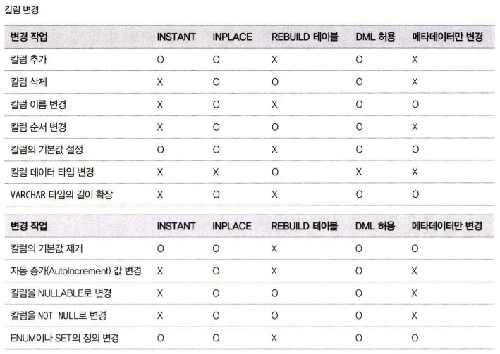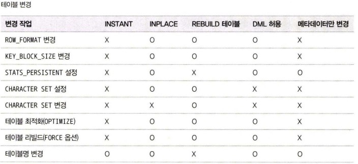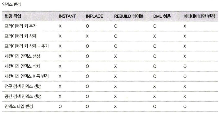 BlogTechTODAY'S PICKS [MySQL] Online DDL 별 적용 가능한 알고리즘 (8.0 이상) TECH by Sangmi Park 2023년 08월 03일 2023년 08월 03일 323 ALTER TABLE 명령을 실행하면 MySQL 서버는 다음과 같은 순서로 스키마 변경 알고리즘을 찾음. ALGORITHM=INSTANT로 스키마 변경이 가능한지 확인 후, 가능하다면 선택ALGORITHM=INPLACE로 스키마 변경이 가능한지 확인 후, 가능하다면 선택ALGORITHM=COPY 알고리즘 선택 알고리즘의 우선순위가 낮을수록 MySQL 서버는 스키마 변경을 위해 더 큰 잠금과 많은 작업을 필요로 하고, 서버의 부하도 많이 발생시킴. INSTANT : 테이블의 데이터는 전혀 변경하지 않고, 메타데이터만 변경하고 작업을 완료함. 테이블이 가진 레코드 건수와 무관하게 작업 시간은 매우 짧음. 스키마 변경 도중 테이블의 읽고 쓰기는 대기하게 되지만 스키마 변경 시간이 매우 짧기 때문에 다른 커넥션의 쿼리 처리에는 크게 영향을 미치지 않음.INPLACE : 임시 테이블로 데이터를 복사하지 않고 스키마 변경을 실행. 하지만 내부적으로는 테이블의 리빌드를 실행할 수도 있음. 레코드의 복사 작업은 없지만 테이블의 모든 레코드를 리빌드해야 하기 때문에 테이블의 크기에 따라 많은 시간이 소요될 수 있음. 하지만 스키마 변경 중에도 테이블의 읽기와 쓰기 모두 가능. INPLACE 알고리즘으로 스키마가 변경되는 경우에도 최초 시작 시점과 마지막 종료 시점에는 테이블의 읽고 쓰기가 불가함. 하지만 이 시간은 매우 짧기 때문에 다른 커넥션의 쿼리 처리에 대한 영향도는 높지 않음.COPY : 변경된 스키마를 적용한 임시 테이블을 생성하고, 테이블의 레코드를 모두 임시 테이블로 복사한 후 최종적으로 임시 테이블을 RENAME해서 스키마 변경을 완료. 이 방법은 테이블 읽기만 가능하고 DML은 실행할 수 없음. 서비스 영향을 최소화하면서 가능한 알고리즘을 확인해 보는 방법 ALGORITHM=INSTANT 옵션으로 스키마 변경을 시도실패하면 ALGORITHM=INPLACE, LOCK=NONE 옵션으로 스키마 변경을 시도실패하면 ALGORITHM=INPLACE, LOCK=SHARED 옵션으로 스키마 변경을 시도실패하면 ALGORITHM=COPY, LOCK=SHARED 옵션으로 스키마 변경을 시도실패하면 ALGORITHM=COPY, LOCK=EXCLUSIVE 옵션으로 스키마 변경을 시도>> 1, 2번으로 되지 않는다면 DML을 멈춘 다음 스키마 변경을 해야 하는 작업임. 스키마 변경 작업의 진행 상황은 performance_schema.events_stages_current 테이블을 통해 확인 mysql> SELECT EVENT_NAME, WORK_COMPLETED, WORK_ESTIMATEDFROM performance_schema.events_stages_current;>> WORK_COMPLETED / WORK_ESTIMATED * 100 : 진행률 Online DDL 별 적용 가능한 알고리즘 방금 읽은 인사이트를 실무에 직접 적용하고 싶으시다면?지금 바로 베스핀글로벌에 문의하세요. 베스핀글로벌 문의하기