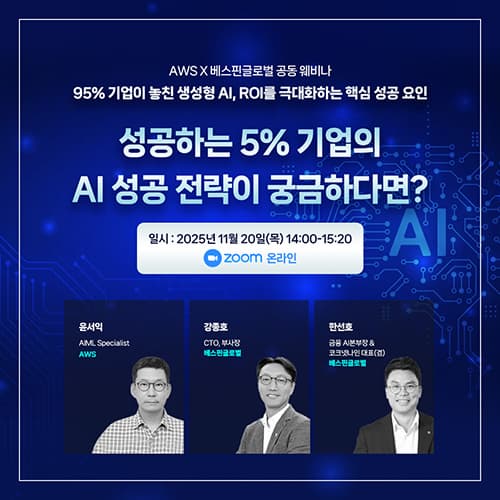 Newsroom 베스핀글로벌, ‘95% 기업이 놓친 생성형 AI’ 웨비나 개최…ROI 극대화 전략 공개 by Sangmi Park 2025년 11월 18일 2025년 11월 18일 4 아이뉴스24 / 2025-11-18 / 윤소진 기자 / [기사 전문 보기] – 베스핀글로벌, 11월 20일 온라인 웨비나 개최…AWS와 함께 산업별 AI 성공 사례 공유 – 정부·금융·제조·교육 등 실제 도입 사례 중심으로 보는 AI 투자, 95%가 실패하는 이유 베스핀글로벌, ‘95% 기업이 놓친 생성형 AI’ 웨비나 개최…ROI 극대화 전략 공개 <이미지 : 베스핀글로벌 x AWS 공동 웨비나 – 95% 기업이 놓친 생성형 AI, ROI를 극대화하는 핵심 성공 요인> AI 서비스 및 솔루션 기업 베스핀글로벌(https://www.bespinglobal.com/)이 오는 11월 20일(목), 기업의 성공적인 AI 도입 전략 수립을 지원하기 위한 온라인 세미나 “95% 기업이 놓친 생성형 AI, ROI를 극대화하는 핵심 성공 요인”을 개최한다. 이번 세미나는 한국 AI 시장 트렌드와 실제 산업 현장에서의 AI 혁신 사례 및 ROI(투자 대비 효과) 개선 전략을 중심으로 진행된다. 국내외 기업들이 생성형 AI를 미래 경쟁력의 핵심 동력으로 보고 대규모 투자를 단행하고 있으나, 투자 규모와 기대치에 비례하는 실질적인 사업 성과를 달성하는 데는 여전히 난항을 겪고 있다. 특히 최근 MIT가 공개한 “생성형 AI 격차: 2025년 기업 AI 실태” 보고서에서 95% 기업이 생성형 AI 도입에 실패하고 있다는 문제를 우리 기업들이 어떤 관점으로 받아들여야 할지에 대한 실마리를 제공하고자 한다. 이번 웨비나는 단순한 기술 도입 차원을 넘어, 비즈니스 혁신과 가치 창출로 이어지는 성공적인 AI 전략이 절실한 시점에 실질적인 인사이트를 제공하는 것을 목표로 한다. 이를 위해 AI 분야를 선도하는 베스핀글로벌과 아마존웹서비스(Amazon Web Services, 이하 AWS)의 AI 전문가들이 연사로 참여해 산업별 도입 전략, 실패 및 성공사례, 그리고 AI 전환 여정 전반에 걸친 실질적인 경험을 공유할 예정이다. 윤서익 AWS AIML 파트너 개발 스페셜리스트는 ‘한국 AI 시장 트렌드 및 AWS 국내 사례’를 주제로, 국내 기업들이 AI를 활용해 비즈니스 성과를 높인 사례를 소개한다. 이어서 강종호 베스핀글로벌 CTO가 정부, 금융, 제조, 교육 등 다양한 산업군의 AI 혁신 사례를 기반으로 도입 시 고려해야 할 전략적 요소를 짚는다. 마지막으로 한선호 베스핀글로벌 금융 AI본부장 겸 코그넷나인 대표이사가 ‘AI Transformation Journey: 성공하는 5% 기업의 성공 전략’을 통해 AI 도입 후 성과를 극대화한 기업들의 공통된 성공 요인을 분석한다. 베스핀글로벌 윤현집 마케팅실장은 “많은 기업이 생성형 AI의 중요성을 인식하고 있지만, 실제로는 성과로 연결하지 못하는 경우가 많다”며 “이번 웨비나는 산업별 성공사례를 통해 기업이 AI 투자의 ROI를 높일 수 있는 실질적인 방향을 제시할 것”이라고 말했다. 이번 세미나는 무료로 진행되며 사전 등록을 완료한 참가자에게는 접속 링크가 이메일로 발송된다. 문의하기